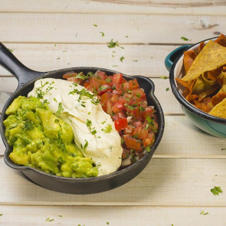 Chuletón de cerdo a la parrilla en salsa de tamarindo, guacamole, elote a la parrilla con sour cream, tajín, refrito de frijol, arroz mexicano, cilantro y totopos.
